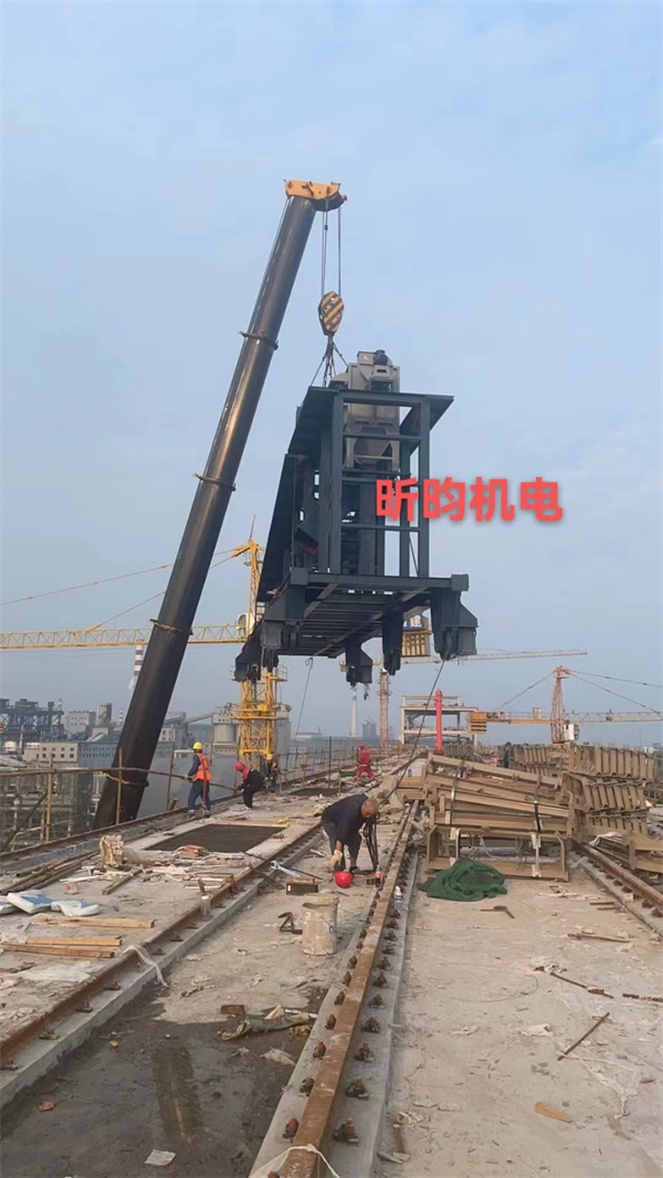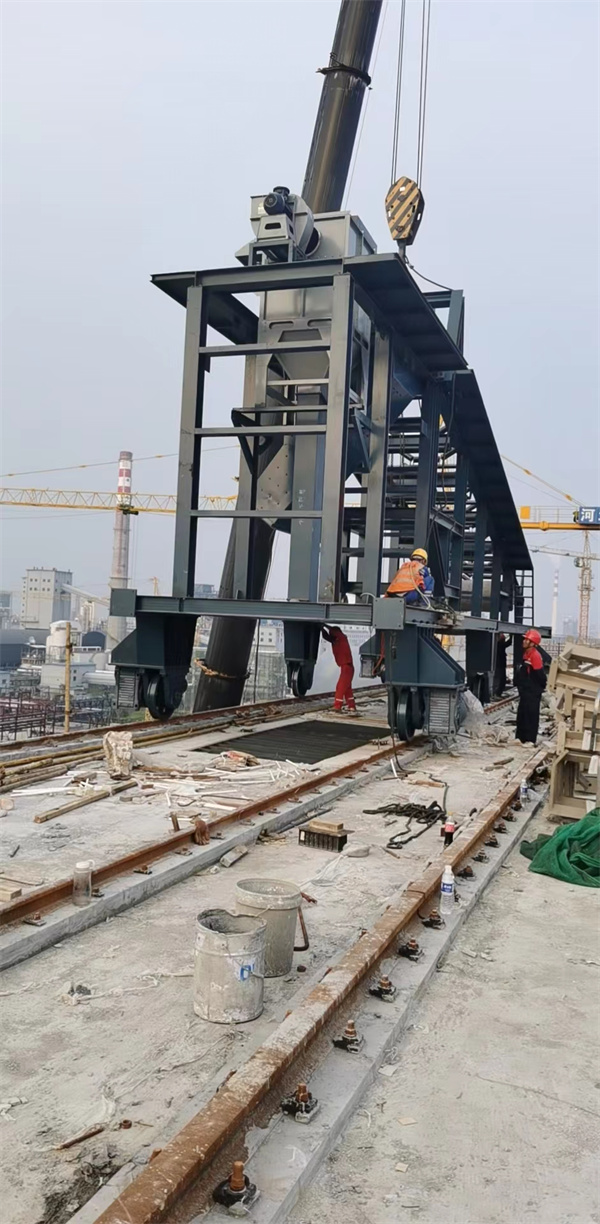 | 揚(yáng)州昕昀機(jī)電設(shè)備有限公司承制山西亞鑫集團(tuán)B=1400型擺動(dòng)鏡像式卸料車吊裝到倉頂 | |